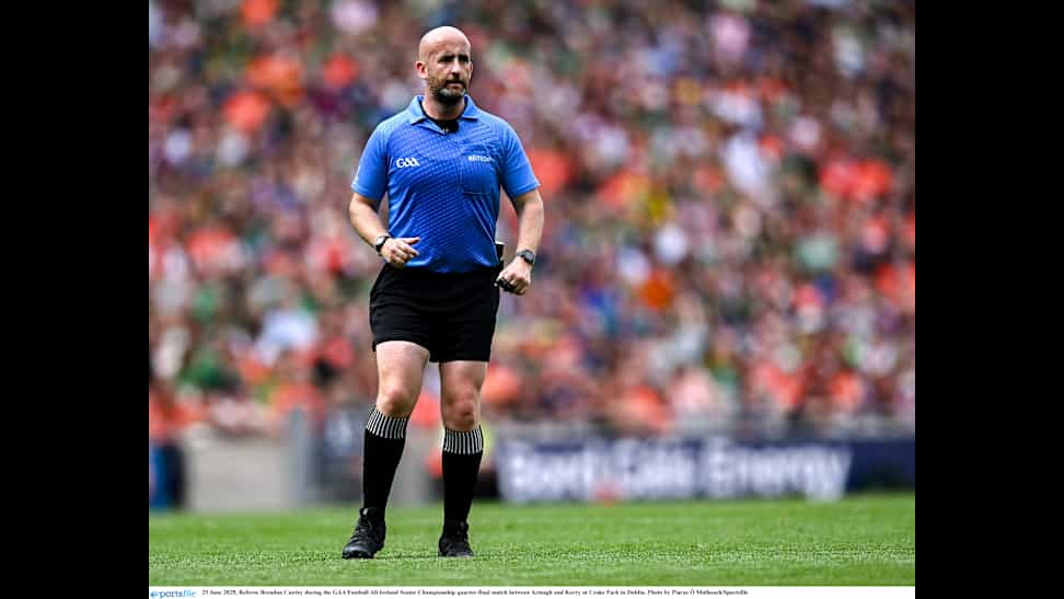 This year’s Football Championship saw Brendan officiate Donegal and Derry, the Ulster Final featuring Armagh against Donegal, as well as Louth vs. Monaghan, Dublin vs. Derry, and the Quarter–Final between Kerry and Armagh. In the Allianz League, he refereed matches between Kerry and Donegal, Galway and Tyrone, as well as Down and Westmeath.