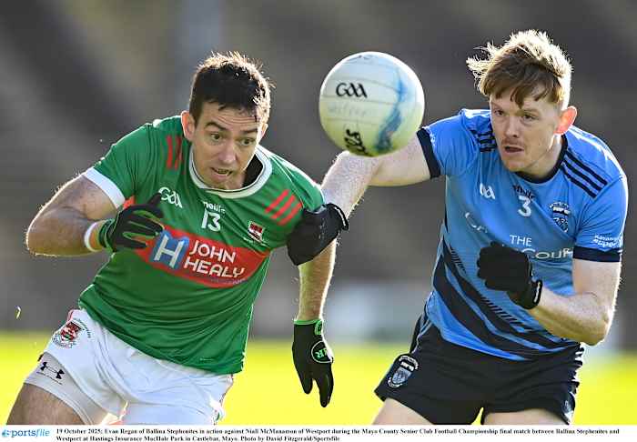 Drama wasn’t in short supply in Hastings Insurance MacHale Park where an injury time two point free from Frank Irwin kept Ballina Stephenites three-in-a-row dream alive and broke Westport hearts – as the sides will have to do it all again next Saturday.